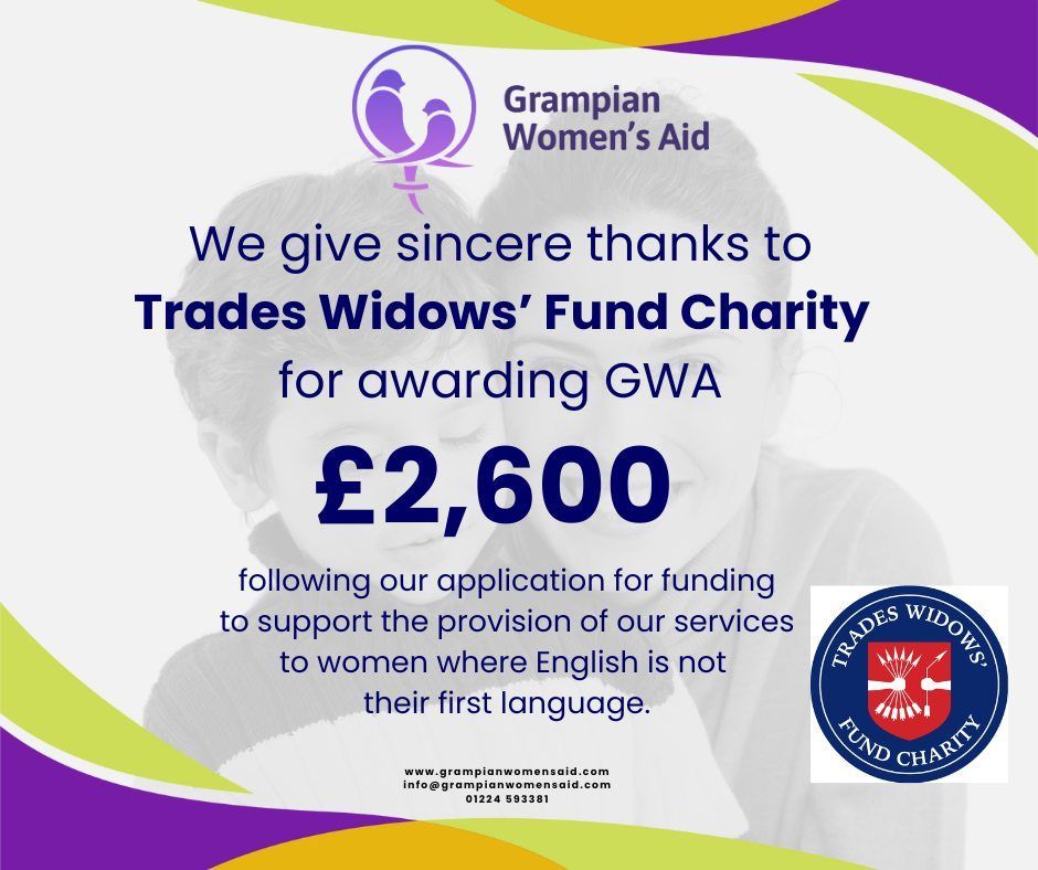 Grampian Women's Aid said: "We understand the incredible challenges and disadvantages women face to access support when language is a barrier to communication. Therefore, we extend our gratitude to the trustees of Trades Widows’ Fund Charity who share this recognition and stand beside us with this funding award. We will use the funds to access professional interpretation services to aid support provision, and we will produce specialist information leaflets and resources in multiple languages, empowering women to better understand; their options, their rights and choose their own pathway for support during their recovery from the impacts of domestic abuse.